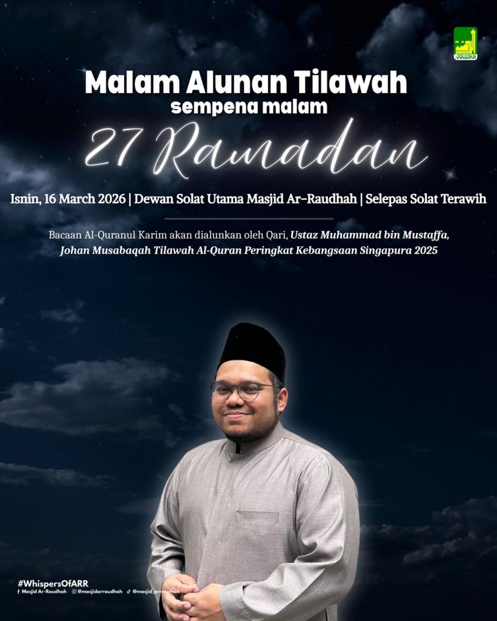 16 Mar, 2026 From 9:30 PM to 10:30 PM Dewan Solat Utama, Masjid Ar-Raudhah, Singapore View MapEvent will be conducted in Malay